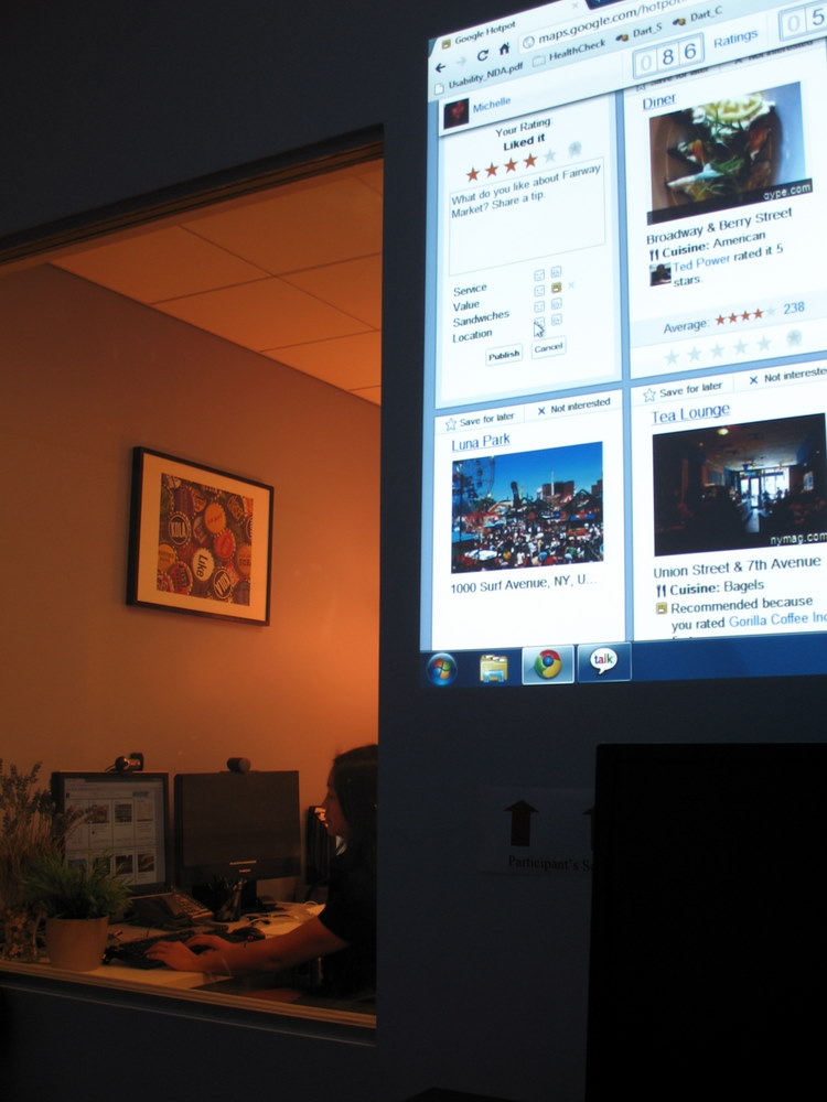 No, not another story about gourmet food at Google. But "lunch is on Google" is what we told people we invited into our usability lab in New York some months back. The deal: We'll give you $50 to spend in a restaurant you haven't been to before. The catch: Make the pick in our lab while we observe you using any website or online tool you wish.